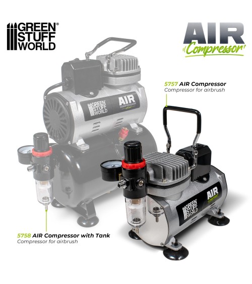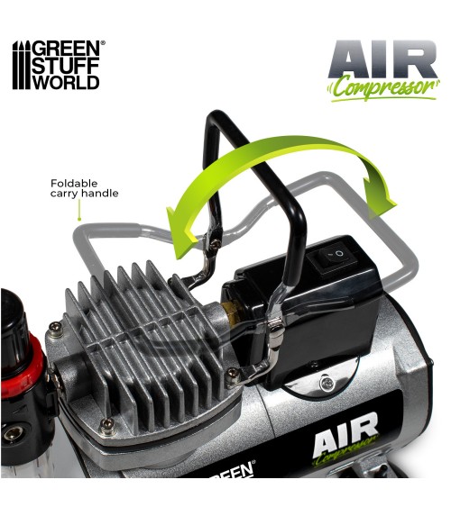 Ce compact compresseur aérographe de Green Stuff World est spécialement conçu pour fournir de l'air comprimé stable et silencieux aux aérographes pour le modélisme. Grâce à son moteur à piston monocylindre efficace et sans huile, il fournit un débit d'air constant de 20 à 23 litres par minute, compatible avec des obturateurs de 0,16 mm à 1,5 mm.