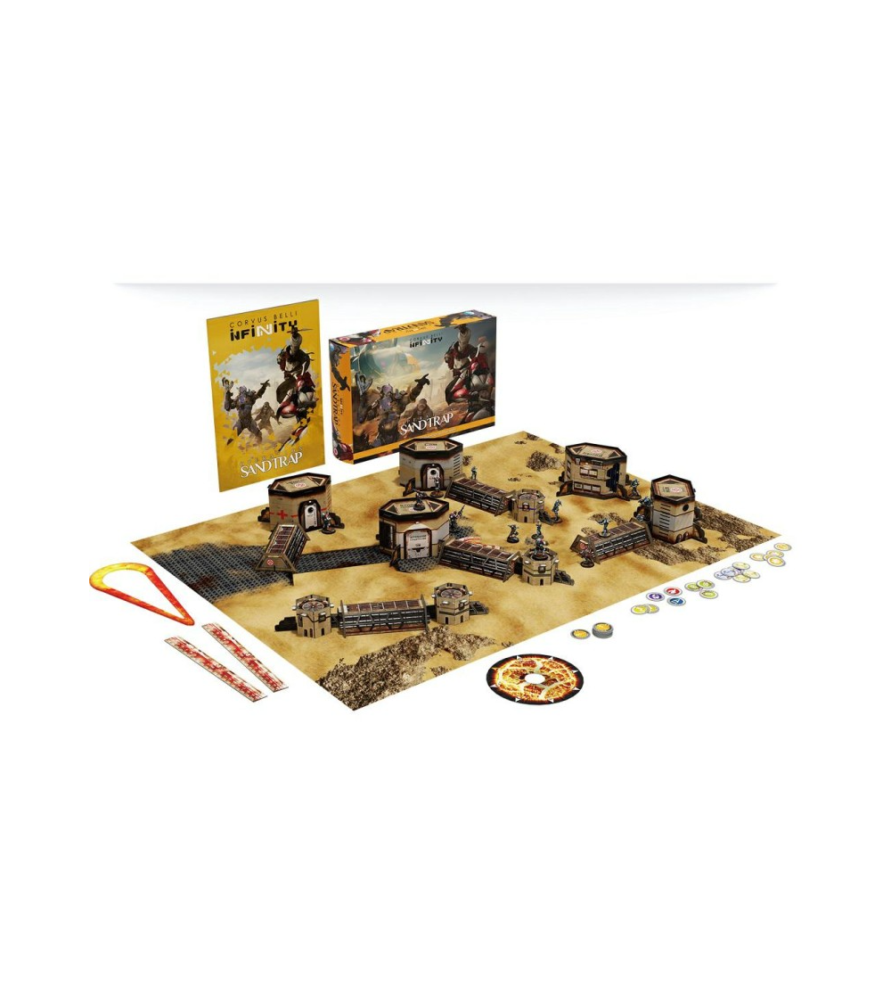 Opération Sandtrap est le premier pack de combat pour deux joueurs dans Infinity N5. Il comprend deux forces complètes issues des nouvelles armées sectorielles de la PanOcéanie et de l'Armée Sécessionniste Japonaise (JSA).