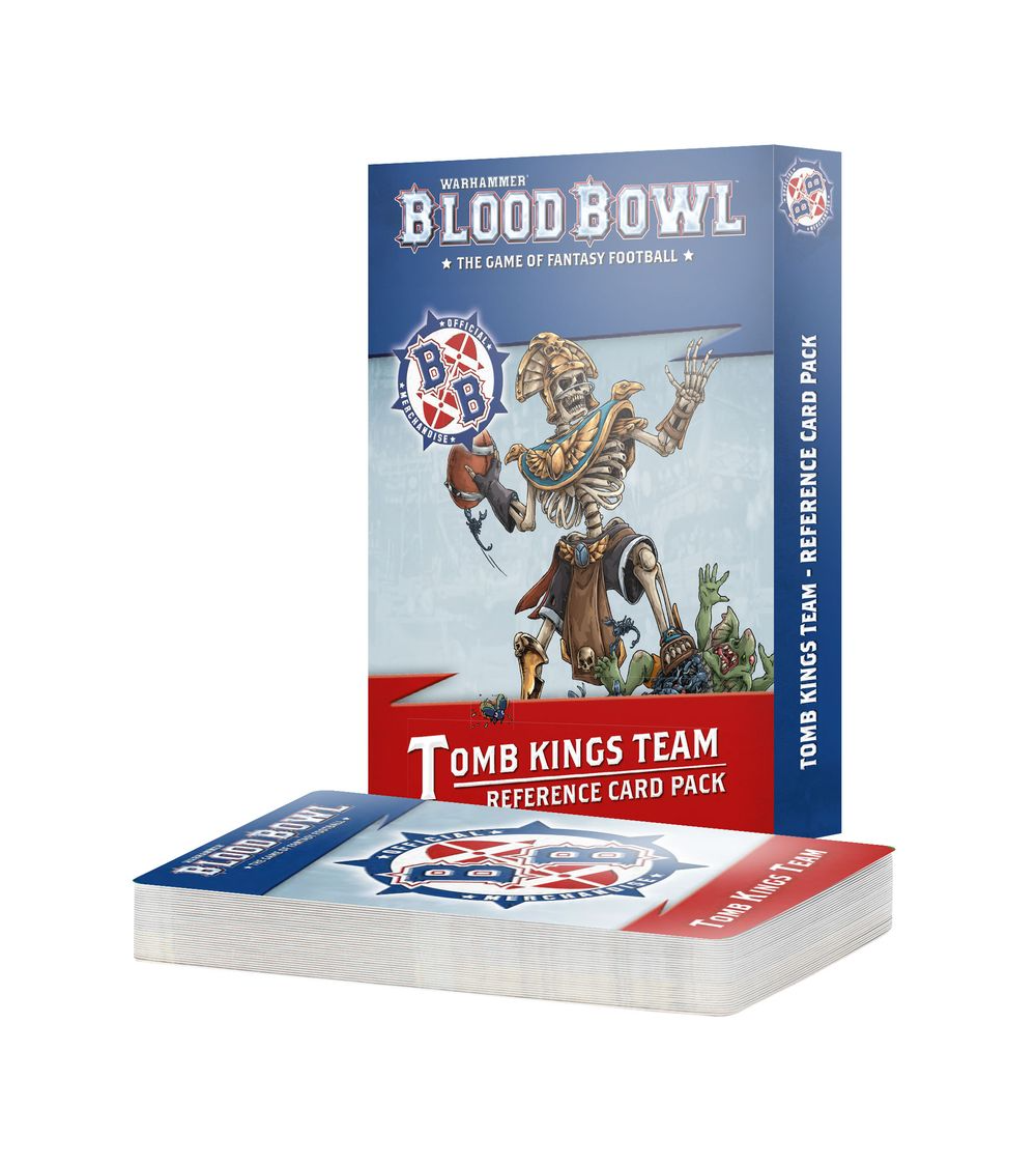 This set of 26 cards will help you keep track of your Tomb Kings team in games of Blood Bowl. There are individual cards for your players, skill reference cards, and special rules cards for Tomb Kings balls and pitches. They are an ideal way to easily check key information in the middle of a match while the crowd cheers and crunching blocks fly. There are also 16 blank Player reference cards, allowing you to track the development of your team during league play.