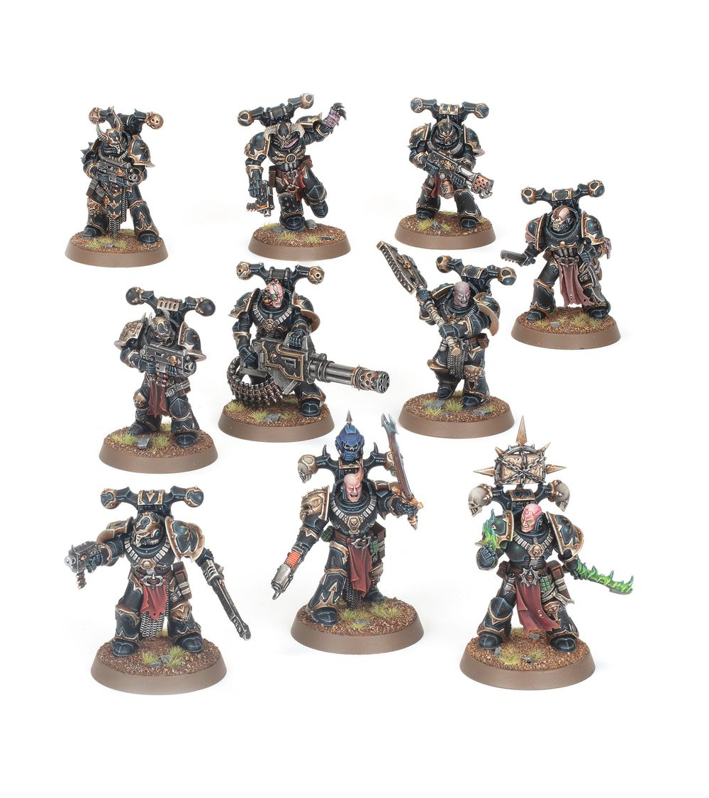 Rares sont ceux à pouvoir résister longtemps à l’offensive des Légionnaires du Chaos. Qu'il s'agisse de vétérans millénaires de la Longue Guerre ou de traîtres issus de bandes de renégats, les Légionnaires sont des guerriers redoutables et polyvalents, qui lâchent des salves de bolts explosifs ou laissent éclater leur haine à coups d'épée tronçonneuse.