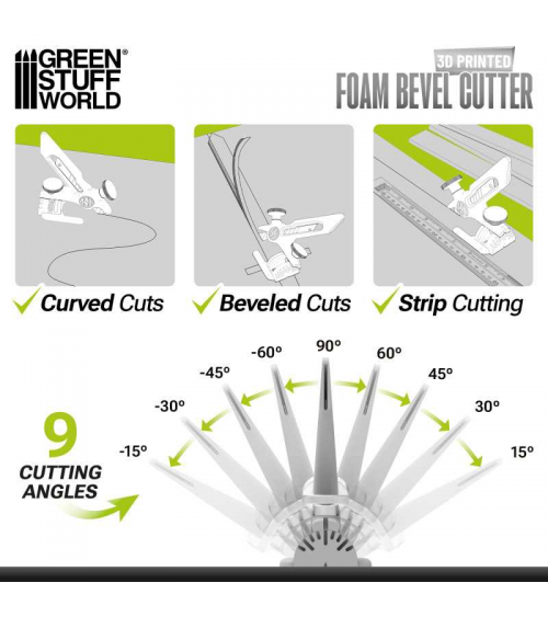 Ce modèle particulier est compatible avec toutes les lames standard de 18 mm à rupture par pression et dispose d'angles de coupe préréglés à −15°, −30°, −45°, −60°, 90° et 15°, 30°, 45° et 60° positifs. Il convient aussi bien aux gauchers qu'aux droitiers grâce à sa conception ergonomique symétrique. Que vous assembliez une armure ou construisiez des bases de diorama en couches, un coupe-mousse en biais simplifie le processus et garantit des résultats nets et professionnels.