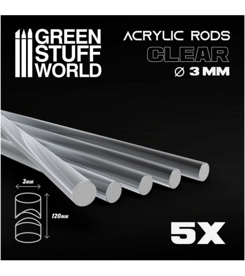 TIGES ACRYLIQUES ROND 3 MM TRANSPARENT