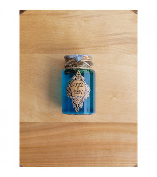 Il s’agit d’une fiole contenant un dé qui flotte magiquement dans un liquide coloré et qui disparait dans des volutes pailletées quand celle-ci est secouée.