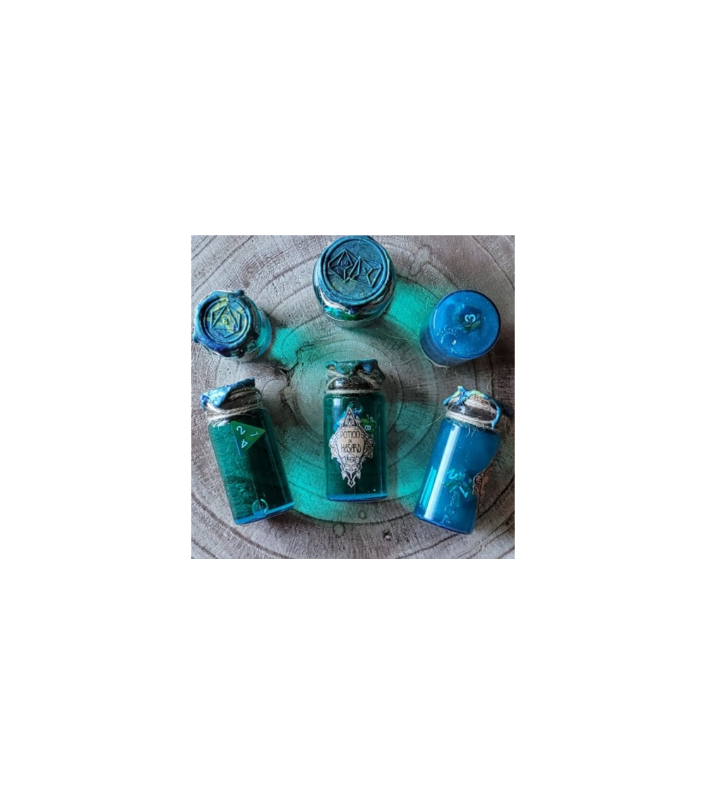 Il s’agit d’une fiole contenant un dé qui flotte magiquement dans un liquide coloré et qui disparait dans des volutes pailletées quand celle-ci est secouée.
