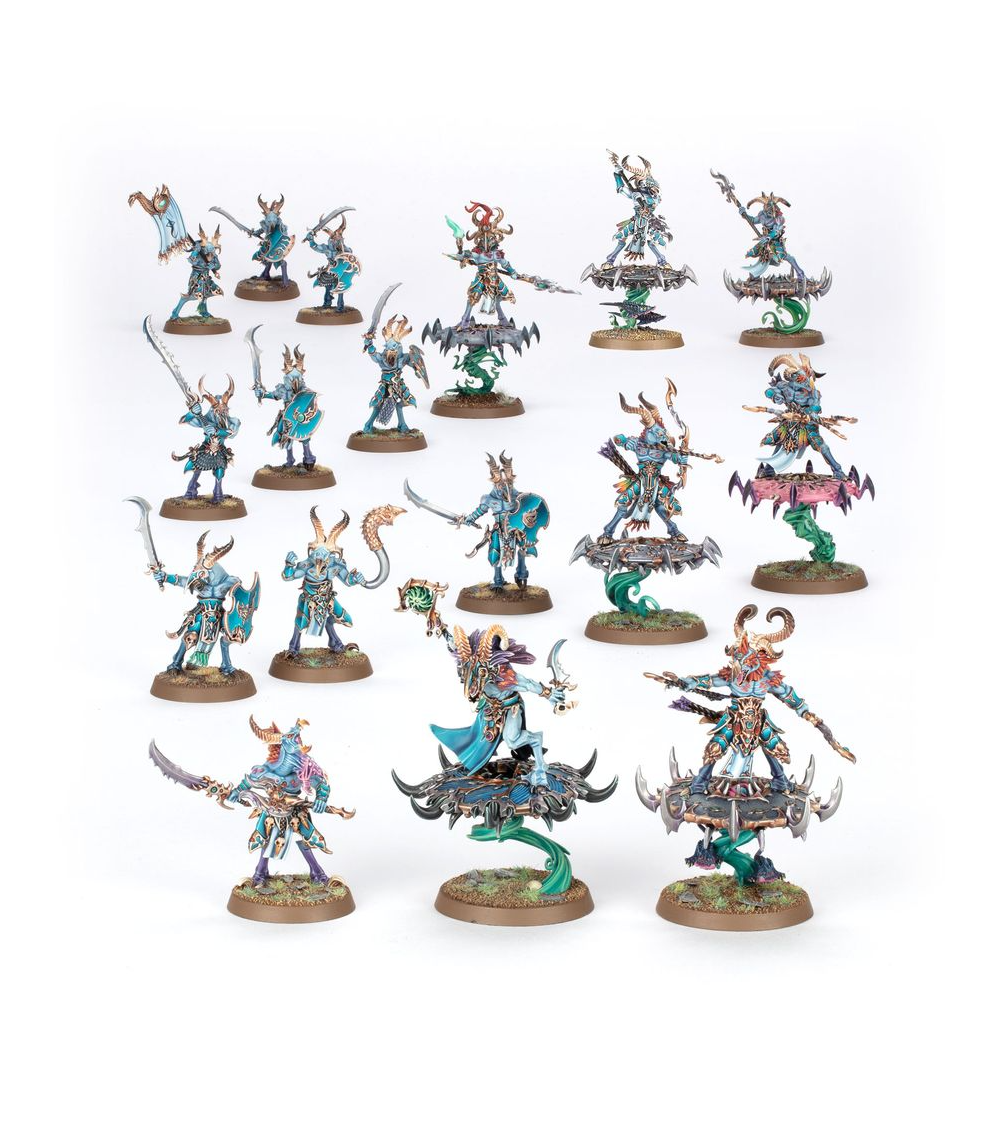 Une sélection d'unités clés des Disciples de Tzeentch qui constituent une force de Fer de Lance complète