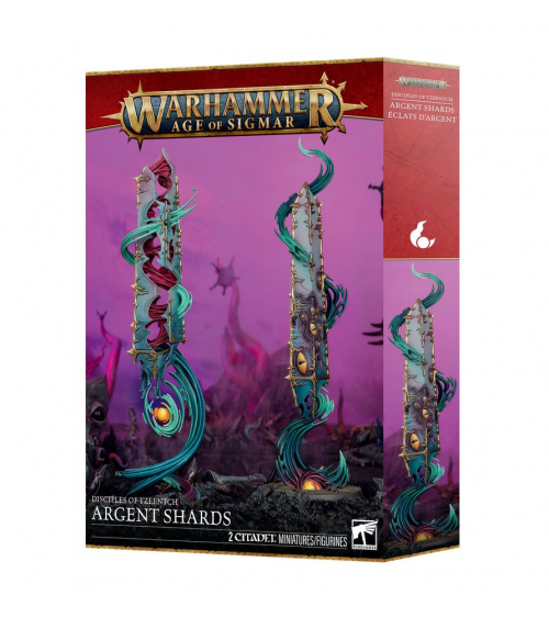 Les Éclats d'Argent sont des fragments jumeaux de cristaux magiques arrachés au noyau démoniaque d'une Tour d'Argent et qui irradient la folie et la corruption mutagène de Tzeentch. Les sorciers du Dieu du Changement peuvent puiser dans ces puissantes sources pour alimenter leurs sortilèges. Si un de ces monuments ignobles est brisé, il se divise en deux, permettant à l'anarchie de continuer à faire rage.