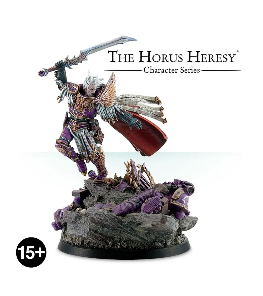 Fulgrim est ici représenté au cœur des combats sanglants, son arrogance et sa condescendance ayant cédé le pas à une fureur guerrière fratricide. Cette figurine dynamique présente le Primarque de la IIIe Légion dans toute son opulence, en train de bondir par-dessus les roches brûlées d'Isstvan V. Le Phénicien représente à la fois un défi de peinture pour les hobbyistes en quête de perfection et une pièce centrale idéale pour toute collection de la IIIe Légion. Il est armé de l'Épée des Laërs, une épée démoniaque qu'il a employée pour tuer son frère Primarque, Ferrus Manus de la Xe Légion. Il est sculpté dans la Panoplie Dorée, son armure d'artificier personnelle.