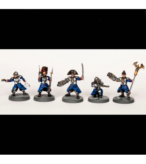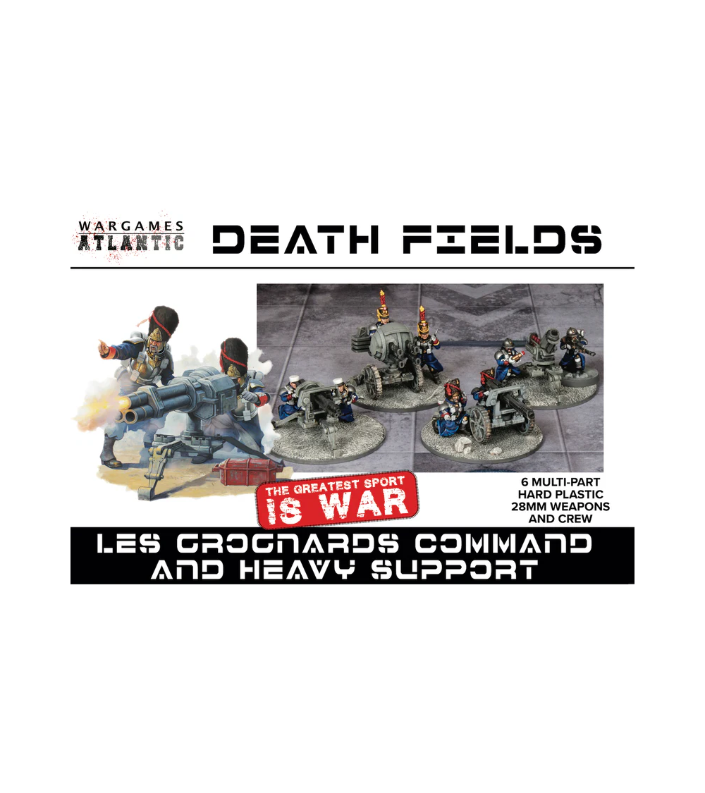 Ce coffret comprend suffisamment de pièces pour assembler 6 armes de 28 mm avec 12 figurines pouvant servir à la fois d'équipage et de commandement. Les options comprennent : un canon à trois canons, une tourelle quadruple, une arme à plasma lourde et un mortier. Des troupes spécialisées telles que des tireurs d'élite, des médecins, des spécialistes en communication, des porte-étendards et des officiers de terrain peuvent également être assemblées. En plus de toutes les options de têtes existantes pour Les Grognards, ce coffret comprend quatre nouveaux types de têtes féminines.