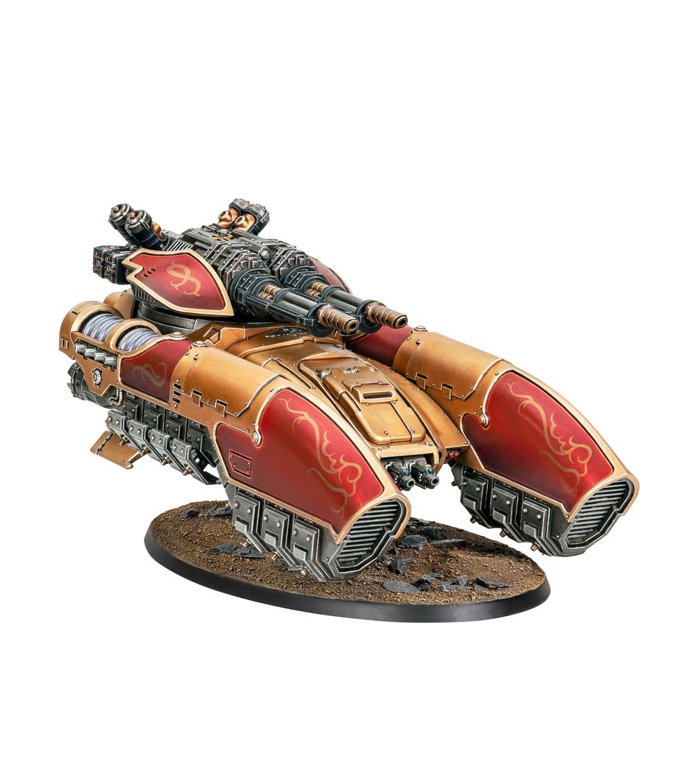 Le Char Antigrav Caladius offre à la Legio Custodes une plateforme mobile et robuste sur laquelle monter un des éléments les plus lourds de son arsenal: une carronade ardante Arachnus jumelée. Avec cette combinaison de systèmes et d'armes avancés, le Caladius Annihilator est peut-être l'unité blindée de ligne la plus puissante de sa taille au sein des forces impériales.