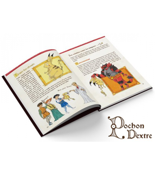Simon de Thuillières est fier et honoré de vous présenter la première œuvre de ses excellents disciples, La Chocoline, illustratrice, et Martin Foret, auteur. Ensemble, ils ont rassemblé toutes les connaissances existantes sur les Bestiasses de Pochon, à la manière d’un carnet de chasse médiéval, dans la plus luxueuse des finitions, avec sa couverture cuir avec dorure à chaud. Pas moins de 100 bestiasses illustrées et documentées, avec tout ce que vous devez savoir sur comment les traquer, les claquemurer et les cuisiner.