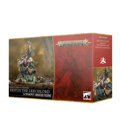 Ce kit en plastique permet d'assembler Festus la Sangsue, un puissant Prince Démon pour vos armées de Putrescents de Nurgle dans les parties de Warhammer Age of Sigmar. Juché au sommet de sa monture démoniaque, Agglutryde, il est prêt à tester ses dernières décoctions sur les champs de bataille des Royaumes Mortels à la tête de vos forces. Peu d'adversaires, si courageux soient-ils, peuvent résister aux attentions de ce "docteur" ambulant alors qu'il agite vers eux son Bâton Noueux de la Peste.