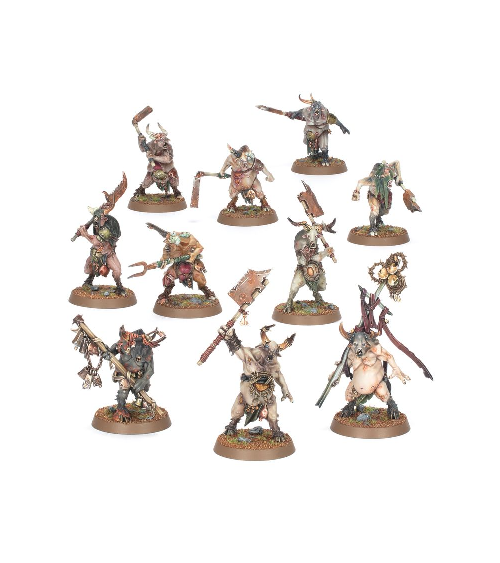 Ce kit en plastique permet d'assembler 10 Pestigors, des hommes-bêtes contaminés pour vos armées de Putrescents de Nurgle dans les parties de Warhammer Age of Sigmar. Ces créatures putrides et bouffies sont prêtes à marcher en avant-garde de votre armée, insensibles à leurs blessures et avides d'engager l'ennemi au corps à corps pour répandre la ruine à l'aide de leurs armes rouillées. Le kit contient les éléments nécessaires pour assembler un champion, un musicien et un porte-étendard optionnels, ce qui vous permet de personnaliser votre unité.