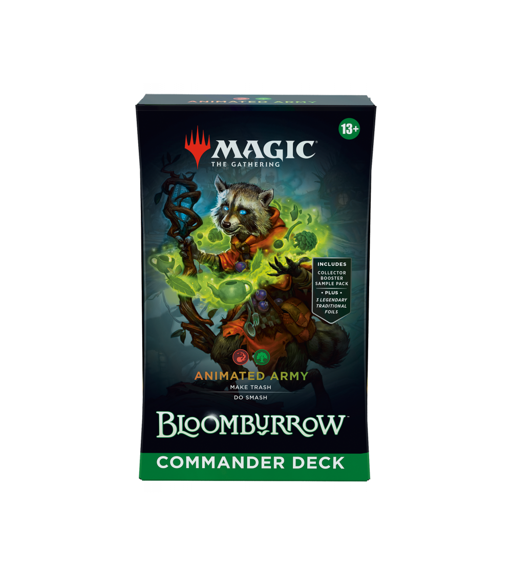 In Commander, four players come together to show their strength and strategy, with one player coming out on top. Each 100-card ready-to-play Bloomburrow™ Commander Deck makes it easy for Commander fans in your store to grab a deck and play right away.