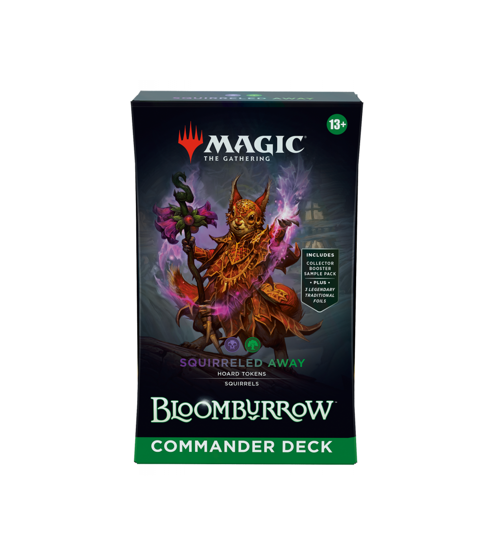 In Commander, four players come together to show their strength and strategy, with one player coming out on top. Each 100-card ready-to-play Bloomburrow™ Commander Deck makes it easy for Commander fans in your store to grab a deck and play right away.