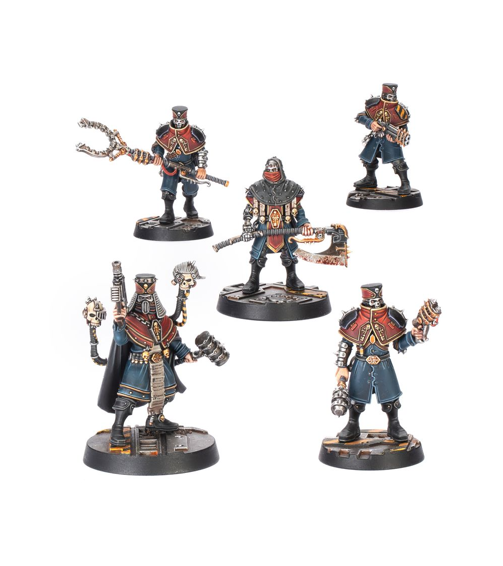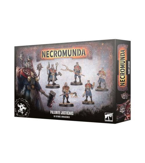 Ce kit en plastique permet d'assembler une délégation Palanite Justicar, des alliés pour vos gangs Respectueux des Lois lors des parties de Necromunda. Leur arsenal ésotérique vous offrira l'avantage lors des combats de gangs. Le Magistrate est armé d'un pistolet bolter et d'un marteau de président, à la fois symbole de son autorité et arme à part entière, tandis que l'Executioner brandit une lourde hache. Ces deux figurines disposent d'un choix de deux faces différentes. Un des Bailiffs peut être armé d'un fusil à pompe ou d'un électropistolet et d'une matraque lourde. Un autre peut être armé d'un attrape-coquin Fulmen ou d'un fusil à pompe. Le dernier Bailiff peut être assemblé debout ou avec un genou à terre et peut être armé soit d'un attrape-coquin Fulmen, soit d'un électropistolet et d'une matraque lourde.