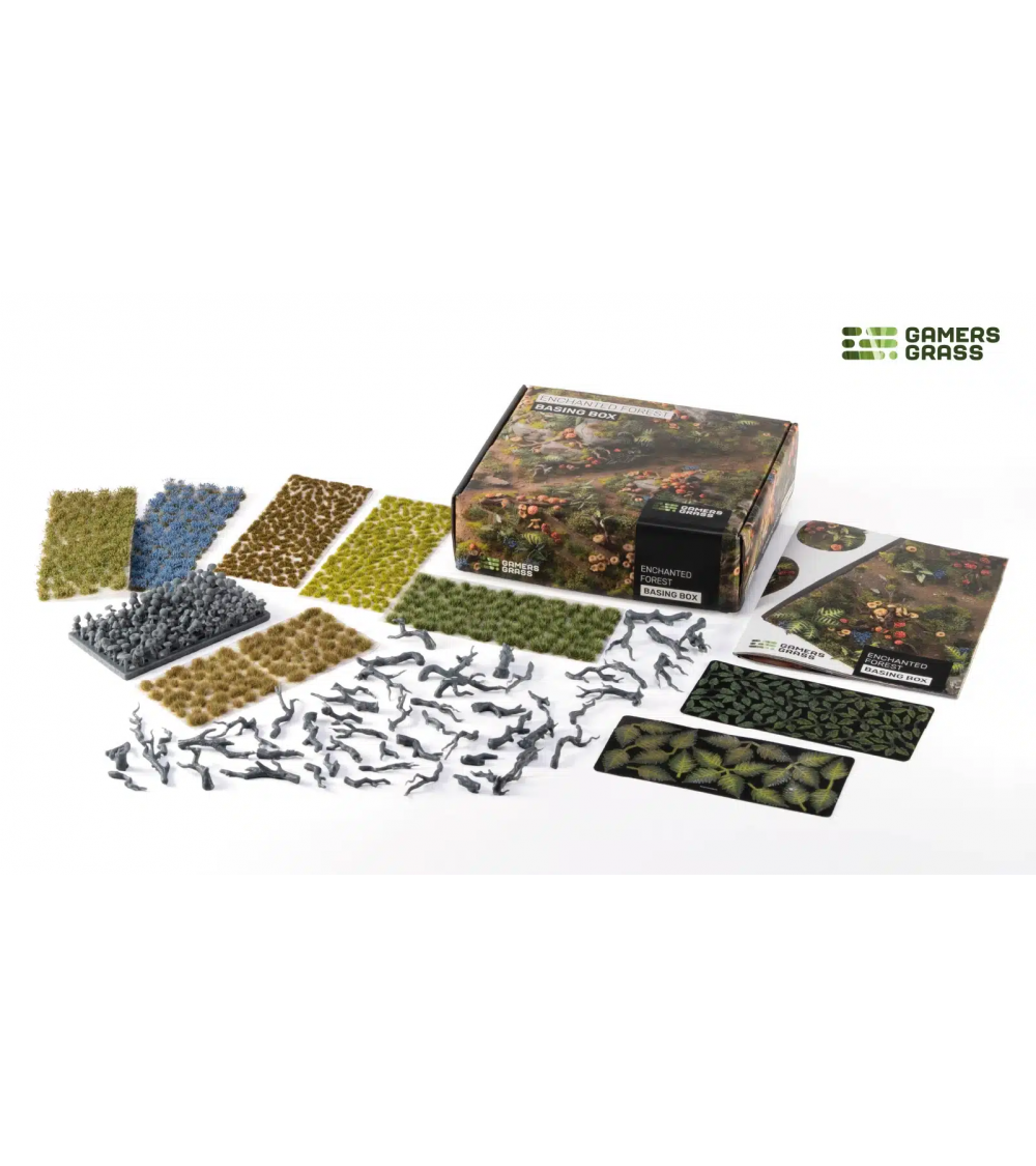 1x Forest Mushrooms Basing Bits;1x Gnarled Branches Basing Bits;1x Strong Green Shrubs;1x Bluebeard Flowers;1x Strong Green 6mm;1x Mixed Green 6mm;1x Dark Moss 2mm;1x Moss 2mm;1x Lords-and-Ladies Laser Plants;1x Bracken Laser Plants;1x Basing Box Booklet;