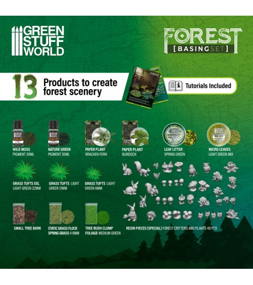 Ce set comprend tout ce dont vous avez besoin pour commencer, depuis les pigments et les différents matériaux de modélisation jusqu'aux différents types de feuillages et même quelques animaux caractéristiques, qui vous permettront de personnaliser votre maquette ou votre diorama forestier. Parfait pour les débutants comme pour les amateurs, ce matériel de modélisme et de wargame vous aidera à donner vie à vos idées.
