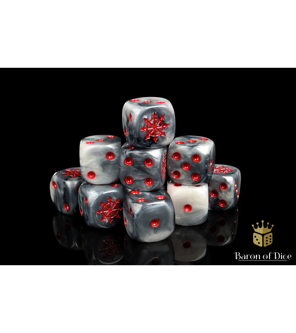 Chaos Demon Dice - Marbled - Red Star (Round corner)