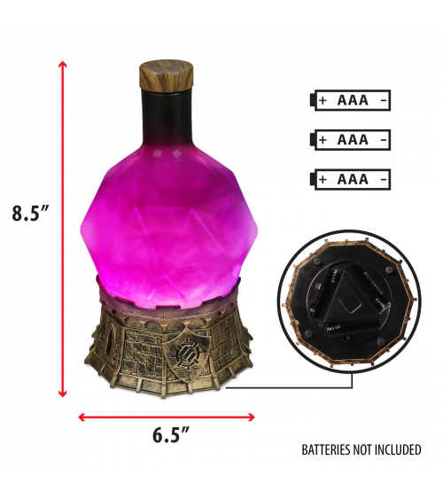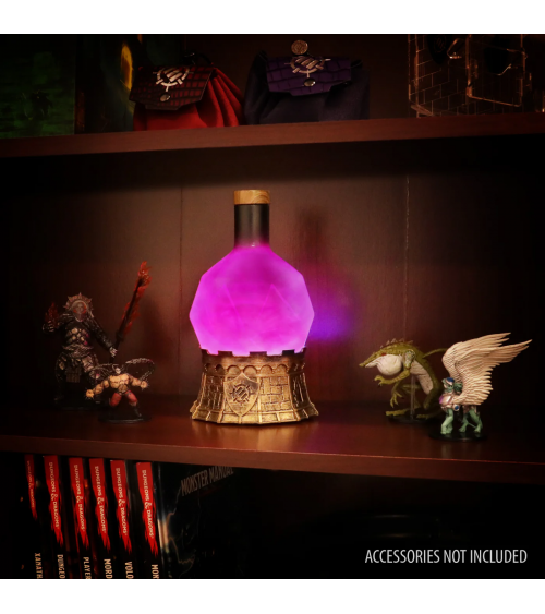 Voici la potion lumineuse du sorcier. Présentation de l'amélioration de gameplay ultime pour les joueurs de RPG sur table, élaborée pour vous par ENHANCE Gaming. Cette lumière fascinante est un spectacle à découvrir, car elle évoque une bouteille de potion en forme de D20 posée au sommet d'une tour de château médiéval. La lumière de potion peut mystifier les joueurs avec des tourbillons de lumière fumée dans deux couleurs toniques disponibles : vert ou violet. Sélectionnez l'élixir de votre choix et ENHANCE votre jeu.