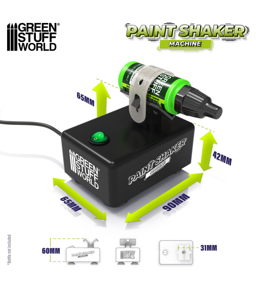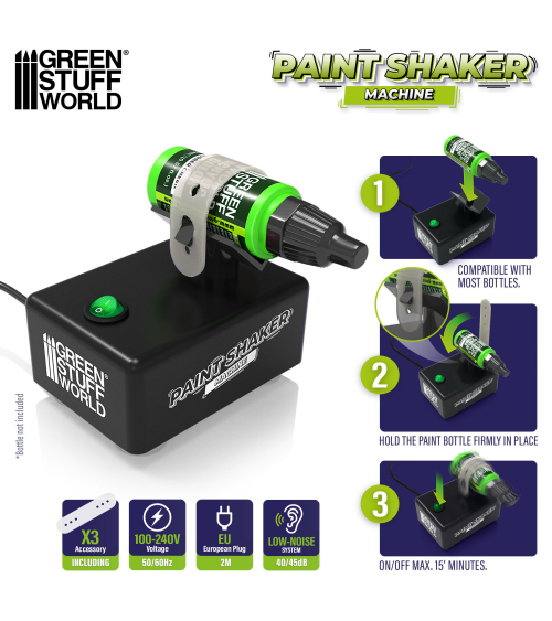 Son design n'est pas original pour notre marque, mais son moteur et ses composants internes ont été modifiés pour améliorer la durée de vie de cet outil de modelage et réduire le bruit généré lors de son utilisation. L'appareil est conçu pour mélanger soigneusement les pots de peinture, en veillant à ce que les composants à l'intérieur soient bien mélangés pour obtenir une consistance lisse et homogène. Il est compatible avec différents types de peinture, tels que l'acrylique, la laque, l'émail, l'huile et le latex, quel que soit le type de flacon.