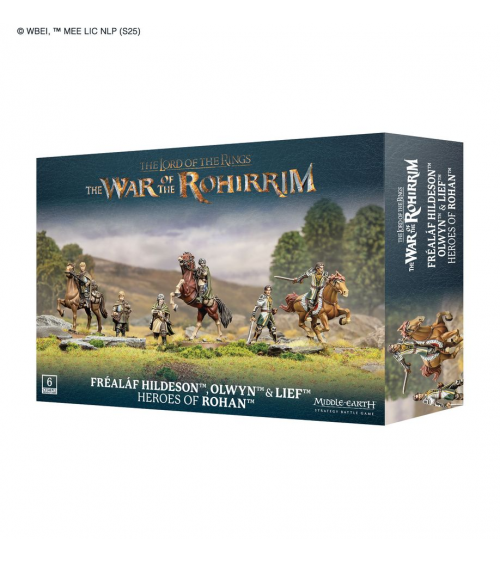 Ce kit en plastique permet d'assembler trois puissants guerriers: Olwyn, Shieldmaiden of Rohan et Lief, Page of Helm, pour vos armées de Defenders of the Hornburg, et Fréaláf, First Marshal of the Riddermark, pour vos forces d'Armies of Edoras dans les parties de Middle-earth Strategy Battle Game. Chaque héros est proposé en deux versions, une à pied et une montée, ce qui ouvre davantage d'options tactiques pour votre armée. Quelle que soit la version que vous choisissez, ces personnages vous feront bénéficier de leurs aptitudes spéciales qui vous donneront un avantage pendant la bataille.