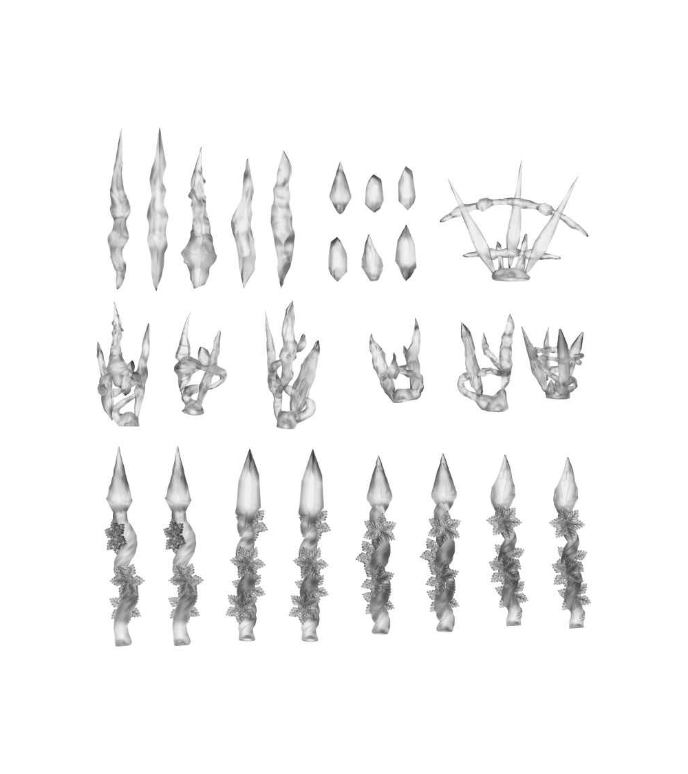 Chaque pièce a été méticuleusement modelée pour capturer le dynamisme du mouvement et l'intensité de la magie en pleine action. Leur conception transparente permet de jouer avec l'éclairage, la couleur et les ombres, pour obtenir des résultats spectaculaires avec de simples touches de peinture, d'encre ou d'effets lumineux LED.