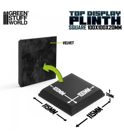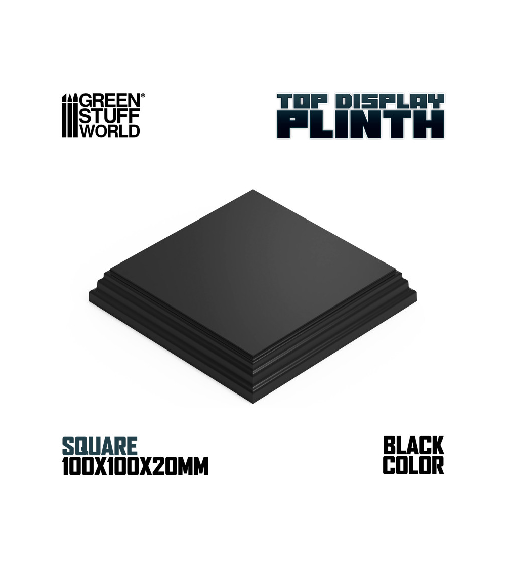 Socle Carré Ouvragé en bois MDF de couleur Noir Laqué, idéal pour exhibier vos figures. Le bas de la socle en bois est livrée avec un fond en feutrine noire douce.
