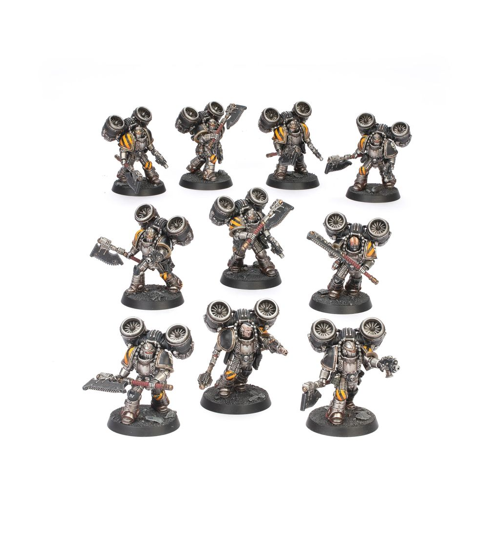 Les Escouades d'Assaut équipées de réacteurs dorsaux sont des troupes d'attaque rapide à l'équipement optimisé pour les combats rapprochés et les tactiques de harcèlement. L'utilisation des réacteurs dorsaux permet aux Escouades d'Assaut de traverser rapidement le champ de bataille et de percuter les lignes ennemies avec une force dévastatrice en franchissant les obstacles et les défenses ouvertes pour engager leurs adversaires dans des mêlées sanglantes.