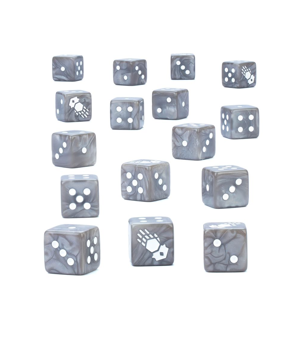Ce set de 16 dés à six faces aux arêtes carrées, sur le thème des Iron Hands, s'utilise lors des parties de Warhammer 40,000. Ils sont en plastique acrylique gris à volutes avec des marquages blancs et mesurent 16mm de côté. Les faces 1 à 5 ont des marquages traditionnels, et la face du 6 est décorée d'une icône de gantelet stylisé des Iron Hands.